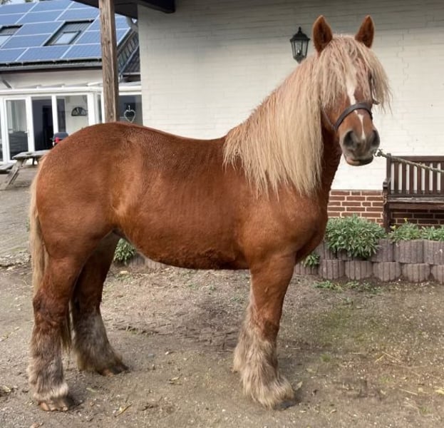 Verkaufe liebevolle Jütländer-Stute Zum Verkauf steht eine bezaubernde Jütländer-Stute, geboren im Jahr 2022. Mit ihrem freundlichen, super braven Wesen und ihrer rassetypischen Erscheinung ist sie eine ideale Begleiterin für alle, die Freude am Fahren und für die Freizeit haben. Merkmale: - Rasse: Jütländer - Geschlecht: Stute - Geburtsjahr: 2022 - Farbe: Fuchs - Stockmaß: ca. 155 cm - Einsatzgebiet: Fahren, Freizeit Diese junge und vielversprechende Stute ist bestens geeignet für ambitionierte Fahrer, die Wert auf ein angenehmes Temperament und gute Fahrqualitäten legen. Sie ist gesund, regelmäßig geimpft und gut sozialisiert und wird aktuell eingeritten. Gewöhnt an Bodenarbeit mit Geschirr und Leinen. Bei Interesse oder weiteren Fragen stehe ich Ihnen gerne zur Verfügung. Vereinbaren Sie doch einen Termin für eine Besichtigung!