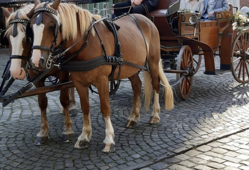 Hallo Wir müssen uns umständehalber von unseren beiden Schwazwälder Wallachen trennen. Sie sind im März 2020 geboren. Die beiden werden gefahren u.a auf Planwagenfahrten, Hochzeiten und Schützenfeste und machen alles super lieb mit. Außerdem gehen die beiden mit Reiter(mit oder ohne Sattel) entspannt durchs Gelände. Mit Kindern sind sie ganz vorsichtig. Schmiedefromm und lassen sich super easy verladen. Bei Interesse gerne melden. Mfg