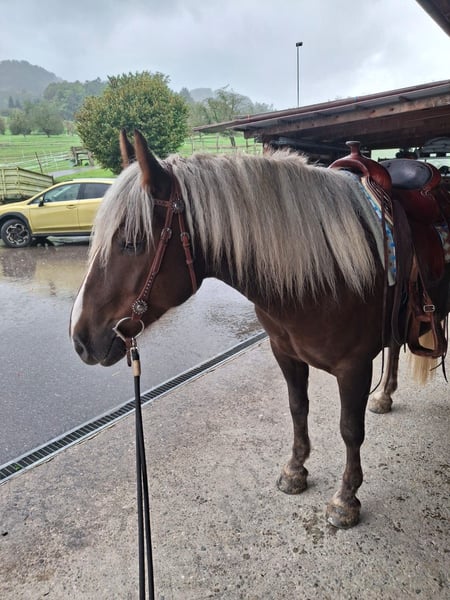 Schwarzwälder Kaltblut Wallach sucht Bestplatz Standort: Schweiz, Kanton Baselland Geburtsdatum: 05.02.2020 (etwas über 5.5 jährig) Stockmaß: ca. 152 cm, wächst noch 1-2cm Vater: Malibu VV: Modus von Montan Mutter: Nanny Mc Phee Herkunft: Schwarzwald Equidenpass vorhanden Importpapiere vorhanden - 01.04.2022 Er wurde mit zwei Jährig gelegt und dann von mir selber in die Schweiz importiert. Er ist neugierig und sehr menschenbezogen, lernfreudig, kontaktfreudig und freundlich. 🐴 Ausbildung und Arbeit • War von Sept. bis Dez. 2024 im Beritt • Beherrscht dem Alter entsprechend alle drei Grundgangarten unter dem Reiter, Übergänge, Rückwärtsrichten und Halten • Kennt Longieren und Bodenarbeit • lernt seit Ende Frühling das Gelände unter dem Reiter in Gruppen kennen. Dabei zeigt er sich sehr sensibel und auch ängstlich. Alleine war er noch nicht draussen. Ich habe ihn, seit ich ihn mit zwei Jährig in die Schweiz geholt habe. Er durfte im Herdenverband aufwachsen und ich lehrte ihm das Fohlen ABC, danach Bodenarbeit, sowie Spaziergänge im Gelände. Die weitere Ausbildung erfolgte durch einen professionellen Bereiter ruhig und schonend, seinem Wachstum entsprechend. Mit über 4.5 jährig startete der Beritt. Er wird freizeitmässig Western geritten, was aber noch gut geändert werden kann. Den momentanen Westernsattel habe ich in Miete, diese kann evtl. übernommen werden. Diverses Zubehör wie Trense, Westernzaum, Neoprenpad, Putzzeug, Apotheke etc. gebe ich dazu. 🐴 Haltung und Gesundheit • Steht zur Zeit in einer Paddock Box mit täglichen Weidegang. Ist sozial, kontaktfreudig und unkompliziert • jährliche Impfungen, sowie jährliche Zahnarztbesuche werden penibel eingehalten. Dabei zeigt er sich lieb und unkompliziert im Umgang mit der Tierärztin • alle vier Hufe beschlagen 🐴 Verkaufsgrund Ich habe ihn vor knapp 4 Jahren mit sehr starkem Übergewicht gekauft und mir erhofft, ihn durch meine Abnahme bald möglich reiten zu können. Nun steht ein Pferd, dass arbeiten möchte im Stall, ich bin aber noch viel zu schwer. Leider läuft die Gewichtsabnahme nicht so wie gewünscht und bringt auch weitere gesundheitliche Folgen mit sich, wodurch er zu wenig gefordert wird. Ich wünsche mir für ihn eine ruhige Bezugsperson die ihn täglich Bewegen kann und eine grosse Weide mit anderen Pferden zum Spielen. Kein Kinder- oder Anfängerpferd AKU ohne Probleme möglich Gerne möchte ich ab und zu ein Bild von ihm bekommen und ihn, je nach Standort zwei- dreimal im Jahr an seinem neuen Platz besuchen. (Natürlich angemeldet) 😊 Ausserdem möchte ich das Vorkaufsrecht, bei Weiterverkauf, damit er kein Wanderpokal wird. 🐴 Platz vor Preis