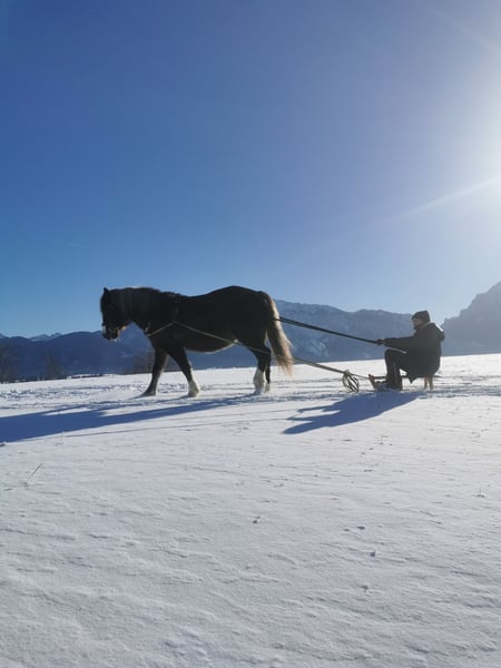 Ich suche für meine geliebte Paula ein neues zu Hause. Paula ist eine 14-jährige Schwarzwälder Stute. Dem Menschen gegenüber zeigt sie sich sehr ruhig und freundlich. Sie ist meistens sehr gemütlich unterwegs. Bei unbekanntem wird sie mamchmal etwas unsicher und braucht eine ruhige Person, die ihr Sicherheit gibt. (Traktoren, LKW's, Autos, Schafe und Kühe sind kein Probelm) Sie lässt sich gut händeln und ist bisher noch nie gestiegen, hat gebuckelt oder ist in Panik geraten (bin eher Angstreiter, habe mich selten unsicher gefühlt). Waren immer viel im Gelände unterwegs, sowohl geritten als auch geführt. Kleine Wanderungen (geführt, 3-4h), baden gehen und neue/unbekannte Wege erkunden. Diesen Winter sind wir auch zum ersten Mal mit ihr Schlitten gefahren. Bei allem war sie sehr brav dabei. Sie ist Offenstallhaltung gewöhnt und ist in der Herde rangniedrig und geht Ärger aus dem Weg. Ich möchte jemanden, der entspannte Ausritte oder Spaziergänge mit ihr unternimmt, dem sie ihr volles Vertrauen schenken kann und der einfach die Zeit mit ihr genießt. Equipment kann mit dazu erworben werden. Für mehrere Infos, gerne einfach melden.