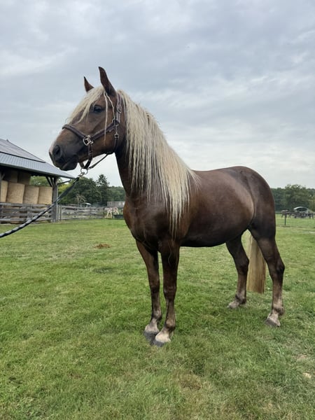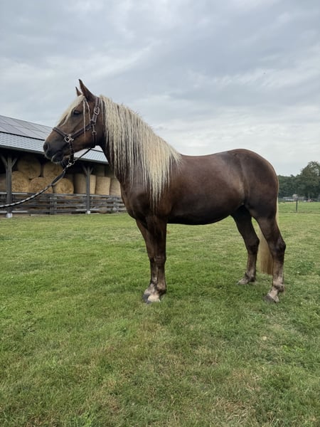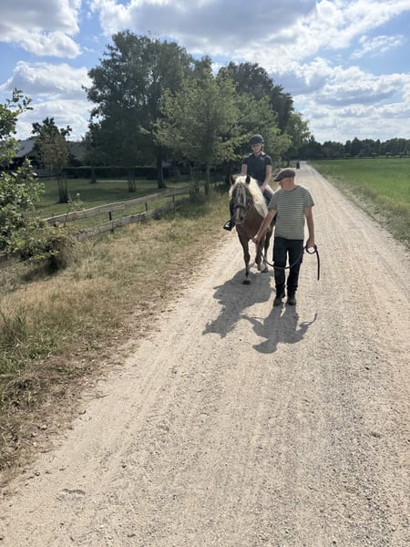 Our sweet Lilly (sired by Maurice, out of Wilddieb) is looking for a new home because her dad is also with us. We have started the process of breaking her to saddle, and she is doing this very well; she knows the saddle, bit, and bridle, but we are still working on her gaits. She is very well-behaved on the trailer and walks along everywhere. Her father is with us and can also be seen.