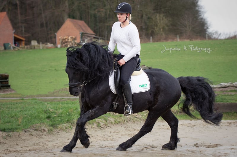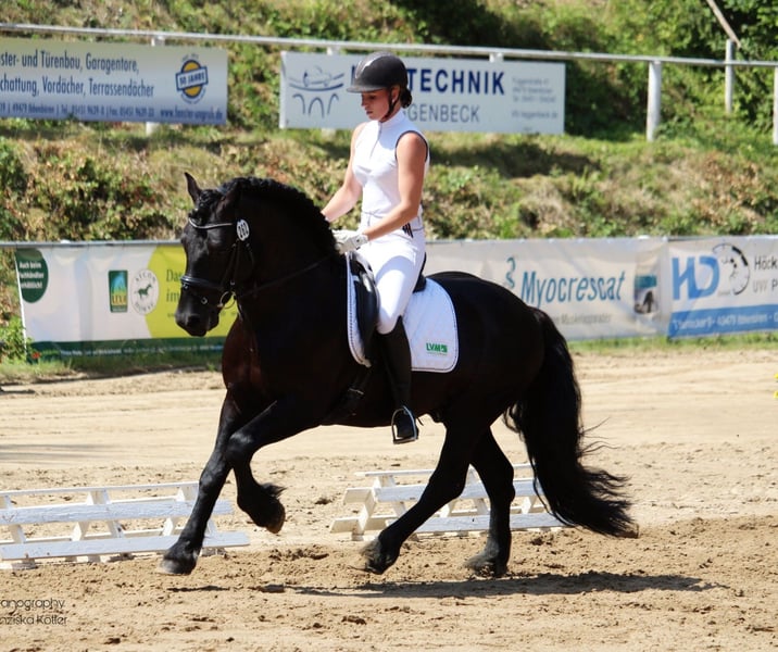 Unser 11jähriger gekörter Merens Zuchthengst steht auch dieses Jahr der Stutenwelt zum decken zur Verfügung. Kiano ist ein menschenbezogener, charakterstarker und motivierter Sportpartner. Er hat bereits Siege und Platzierungen der Klasse A vorzuweisen und wurde auch schon in der Klasse M vorgestellt. Im Training wurde mit M-Lektionen begonnen. In der täglichen Arbeit zeigt er sich sehr leichtrittig, fein an der Hand und ist immer motiviert und lernwillig. Er geht brav alleine und mit anderen Pferden ins Gelände. Diese Eigenschafften und seine Coolness gibt er auch an seine Nachkommen weiter. Seine dreijährige Tochter steht auch hier vor Ort, so das sich bei Interesse gerne ein Bild gemacht werden kann. Kiano deckt nur im Natursprung, daher ist eine aktuelle Tupferprobe erforderlich. Da wir nicht regelmäßig am Rechner sind, bitten wir um telefonische Kontaktaufnahme unter 0172/6052531.