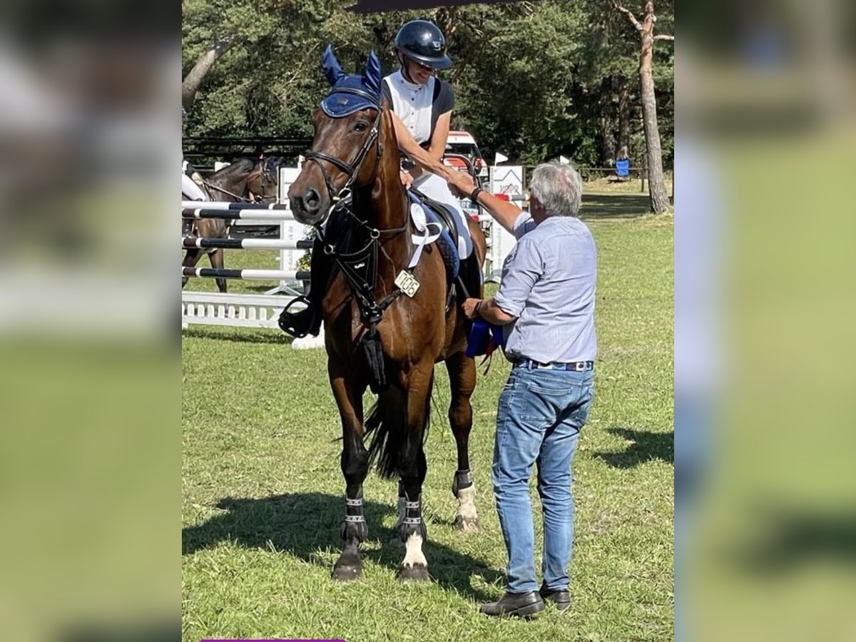 Zum Verkauf steht ein selbstbezogener und selbst ausgebildeter Sohn des Kannan. Er ist vermögend und mit genügend Vorsicht ausgestattet und hat einen praktischen Galopp. Er ist bis 1,50 m Springen gegangen und hat viele Platzierungen über 1,45 m. Er ist trotz der Größe fein zu Reiten, selbst von Kindern. Er ist toll im Umgang, beim Schmied, Tierarzt, in der Herde, beim Ausreiten und auf dem Turnier. Alles in allem also ein toller Partner. Bei weiteren Fragen kontaktieren Sie mich gerne telefonisch oder per WhatsApp.