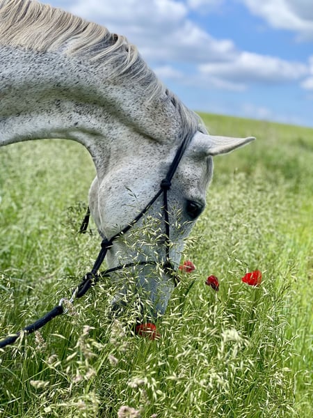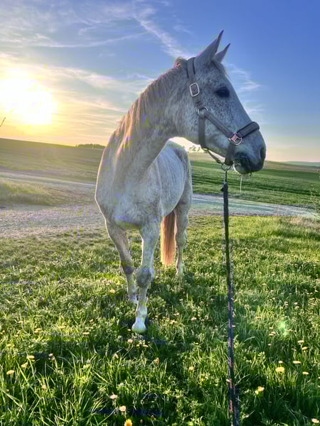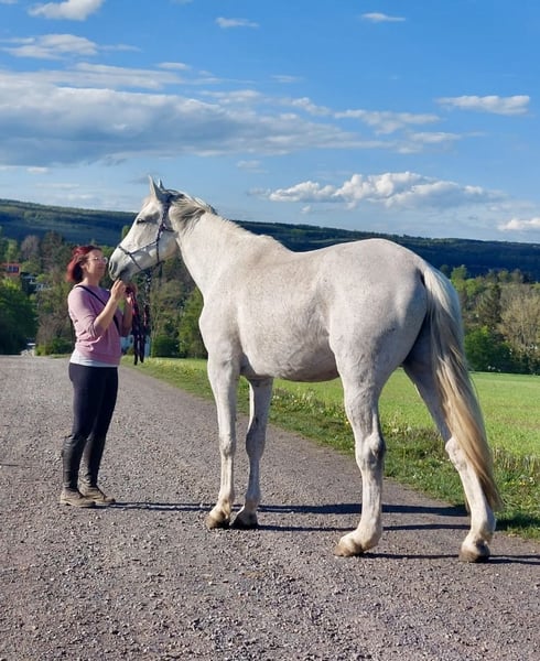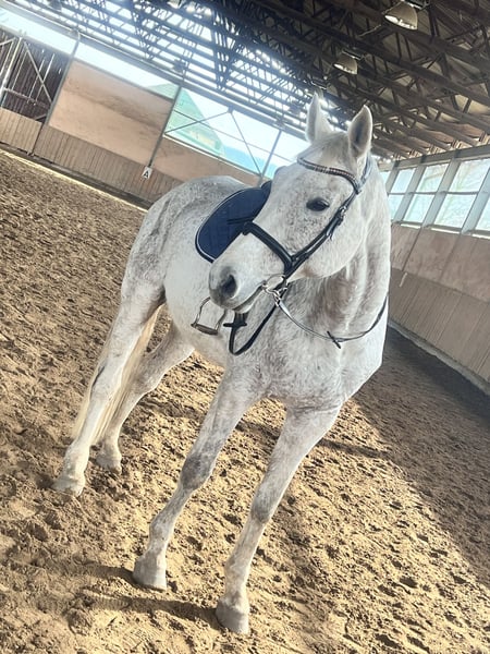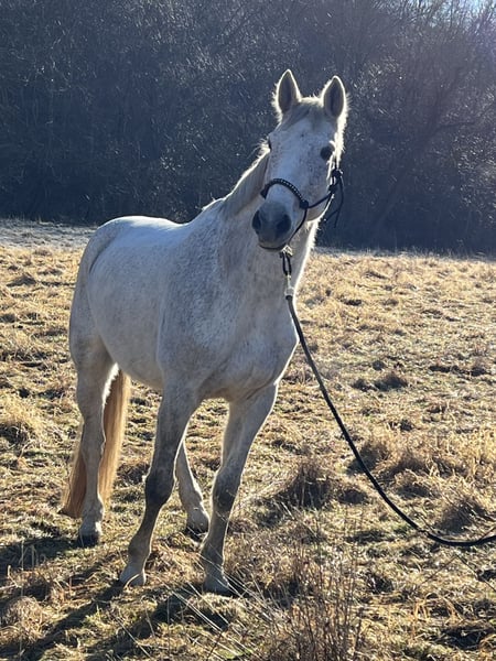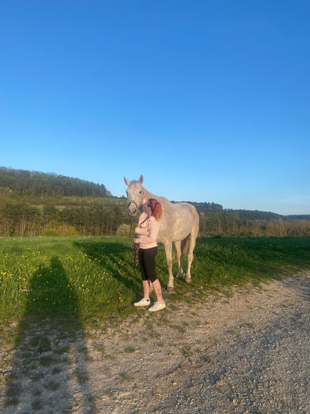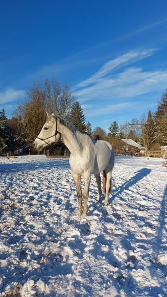 wird im April 16 Jahre jung und hat ein Stockmaß von ca. 1,73m. Smirnoff ist Springgezogen und hat eine Gute Abstammung, ist vor meiner Zeit bis L gesprungen und hat sich aufgrund dessen 2021 an beiden Hinterbeinen einen Fesselträgerschaden zugezogen (ein NachBefund der Klink ist vorhanden, leider keine Bilder. Trotz seiner Verletzung ist er ein absoluter Schatz und sucht jemanden, der ihm die Aufmerksamkeit gibt, die er verdient. Er wäre ideal für leichte, gemütliche Schrittrunden/Spaziergänge (auch mit Kindern kein Problem) oder als reines Beistellpferd. Ich habe ihn 2023 in schlechtem Allgemeinenzustand "gerettet" Mittlerweile hat er wieder gut aufgebaut (er war sehr abgemagert) aber da ist noch Luft nach oben. Aufgrund des Schadens kann er nur die Hinterbeine nicht ganz so gut geben, aber dann nimmt man es einfach nicht so stark hoch und raus beim Auskratzen. Er ist hinten beschlagen. Verladen ist so eine Sache…man brauch viel gedult und am besten keine Klappe eher eine Stufe, wenn er dann drin steht ist er ruhig. Schweren Herzens muss ich mich aber nun doch von ihm trennen, da ich ihm die optimalen Bedingungen, die er benötigt, nicht mehr bieten kann. Es besteht der Verdacht auf DSLD. Aktuelle Sono Bilder liegen vor. Ich wünsche mir für Smirnoff täglichen koppelgang (auf gerader Koppel ohne Hang) und nachts eine Box (zumindest im Herbst und Winter) gerne auch befestigtes paddock. Er ist gut herdenverträglich und eher im mittleren/niedrigerem Rang. Er versteht sich mit Stuten sowohl als auch mit Wallachen.