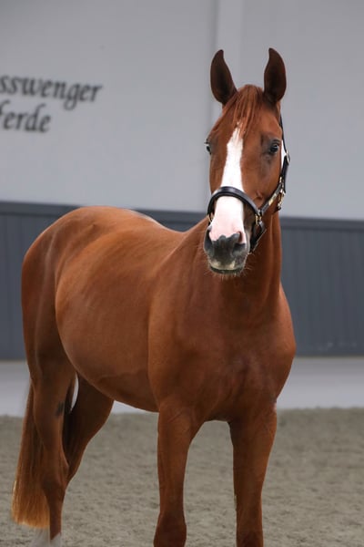 For sale on behalf of the owner due to downsizing. This stylish gelding comes directly from the breeder, has already been presented at the free jumping championship, and is absolutely clear-headed. He is very well-behaved, calm, and composed in handling and everyday situations. Loading and farrier work are no problem. In terms of training, he is well on his way to becoming a riding horse. He approaches everything new with an open and positive attitude. He is familiar with grooming, washing, and even lunging. He has three good basic gaits and a good jumping technique, with awareness and caution. Anyone looking for a horse to train will find a great partner in this colorful chestnut, which is also likely suitable as a hunter. Current X-ray images with no findings and a flawless clinical examination are available. If you would like specific videos, just let us know, and we will gladly film what you need. Organizing transport to the new home is no problem! Important notes: • Height measurements are estimated and not precisely measured. • All descriptions are subjective assessments of the seller and do not constitute guaranteed characteristics. If you are interested or have further questions, please feel free to contact us anytime by phone at 015140555583. We are also available on weekends and holidays. A trial ride is possible at any time.