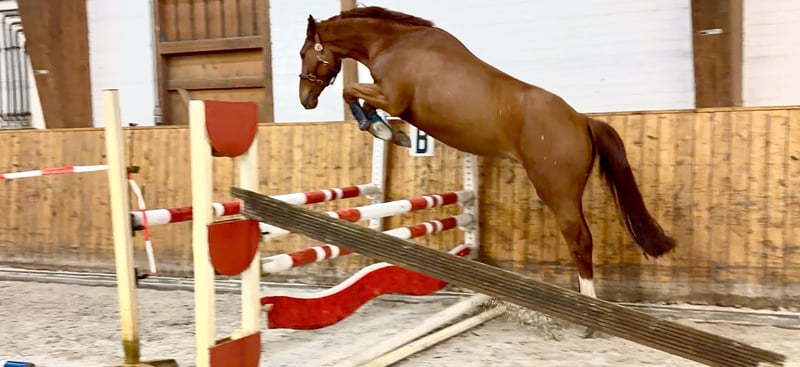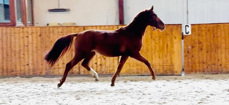 Typvolles, modernes Nachwuchsspringpferd von Nabab de Reve x Cornet Obolensky x Calido, aus sehr erfolgreichem Stutenstamm. Nadini de Reve ZD ist 2022 geboren, angeritten und macht mit dem Reiter erste Sprünge. Er ist sich brav, unkompliziert und sehr rittig, dabei stets aufmerksam und motiviert. Er überzeugt durch seine schöne Einstellung zur Arbeit, seine harmonischen Bewegungen und sein bildhübsches Erscheinungsbild. Durch seine leistungsgeprägte Abstammung vereint er moderne Sportlichkeit mit guter Rittigkeit. Aufgrund seines hervorragenden Charakters eignet er sich für ambitionierte Amateure ebenso wie für Profis, die ein Nachwuchspferd mit Perspektive suchen. Ein junger Wallach mit viel Qualität und Ausstrahlung. https://www.zanddynasty.de/sportpferde/nadini-zd www.zanddynasty.com Wir züchten mit Stuten bester Genetik in Anpaarung mit sporterfolgreichen Hengsten, wie Baloubet du Rouet, Casall, Clarimo, Cornet Obolensky, Diamant de Semilly, Dominator 2000 Z, Dourkhan Hero Z, Eldorado van de Zeshoek, Kannan, Nabab de Reve, Quidam de Revel und Taloubet Z und haben daraus Nachwuchspferde, von Fohlen bis zu erfolgreichen Sportpferden. Bei Interesse melden Sie sich gerne +49.173.3074429 oder info@zanddynasty.com.