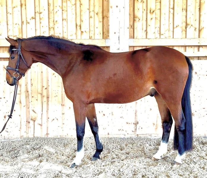 Attractive 5-year-old gelding from a breeder For sale is a very typey 5-year-old gelding directly from the breeder. He impresses with his elegant appearance and harmonious presence. In terms of temperament, he is absolutely lovable, friendly in manner, and very attentive to people. He consistently behaves well, is alert, and uncomplicated — a horse with a truly wonderful character. The young gelding was recently gently backed and is pleasant to ride during this process. He is sensitive to aids, learns quickly, and brings great joy to his rider. Currently, he is gaining his first experience over jumps and shows motivation and talent. The sale is solely due to the breeder’s wish to reduce his stock and scale down in the future — not due to a lack of quality. A promising young horse with a solid foundation for successful further training. If interested, we look forward to hearing from you.