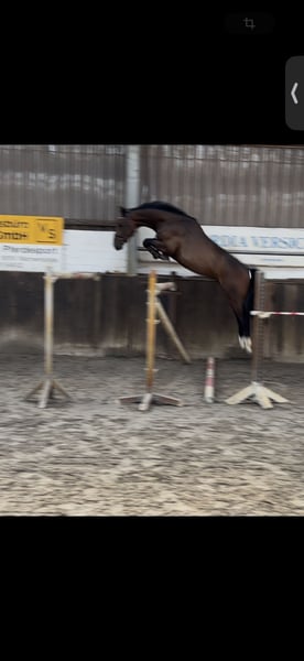 Autonomo, il nostro stallone di 4 anni di Empire sta facendo i suoi primi salti sotto sella. È facile da montare, impara rapidamente, è molto ben gestito e ha un ottimo modo di saltare con cautela e grande potenza.