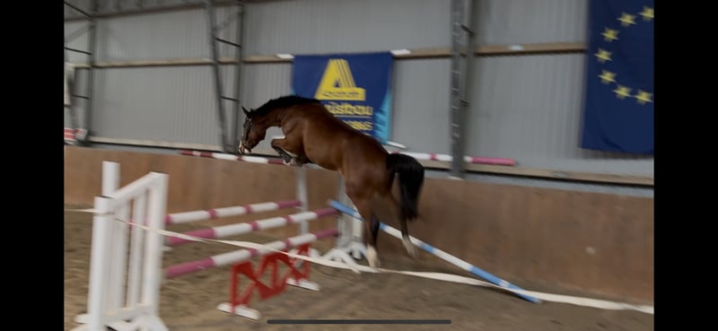 Verkaufe im Auftrag! 2020 geborener Wallach von Baloutaire PS aus einer Marome NW Mutter. Stockmaß: 1,65m (steht aktuell noch im Wachstum) TÜV aus November 2025 vorhanden: o.B. Angeritten (ca. 4 Monate unter dem Sattel) Zeigt sich hier sehr rittig und ist mit guten Grundgangarten ausgestattet. Macht aktuell die ersten Sprünge unter dem Reiter. Beim Freispringen zeigt er sich mit viel Potenzial und Übersicht. Auch von Unterbauten ist er bisher unbeeindruckt. „Baloutelli“ ist geimpft und entwurmt, sowie Schmiede- und Verladefromm. Im Umgang ein sehr anhängliches und verschmustes Pferd. Auch in der Arbeit zeigt er sich sehr motiviert und möchte gerne alles richtig machen. Er kennt sowohl die Reithalle und auch den Reitplatz. Gelände lernt er aktuell kennen. Videos auf Anfrage.