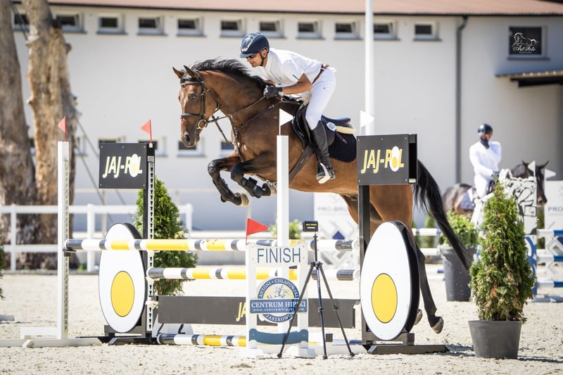 Zilan S (Zinedream - Landprinz I - Azarro), *2020, Oldenburg International (OS), ok. 166 cm Zilan S to niezwykle urodziwy, ultranowoczesny i atletyczny 5-letni wałach, który urzeka wspaniałym charakterem oraz bardzo dobrą jezdnością i nastawieniem do pracy. Całość dopełniają trzy bardzo dobre chody podstawowe, przy czym szczególną uwagę zwraca galop. Obecnie Zilan S startuje w konkursach do klasy P (1,10 m). Ojciec, Zinedream to międzynarodowy zwycięzca 5* Grand Prix, który błyszczy w międzynarodowym sporcie pod wodzą drużynowego wicemistrza Europy Davida Willa. W 2024 roku para świetnie rozpoczęła sezon od zwycięstwa na najwyższym poziomie. Na CSIO5* w Abu Dhabi/UAE Zinedream i David zwyciężyli w Dużej Rundzie 1,60 m. Galopowali do mety około 1,5 sekundy szybciej niż numer jeden na świecie Henrik von Eckermann i błyskawiczny King Edward. Największe sukcesy, takie jak zwycięstwo w konkursie skoków Global Champions League (1,60 m) w Riesenbeck, zwycięstwo na etapie Pucharu Świata w Rijadzie (1,60 m), srebro w Pucharze Narodów w Sharjah/UAE z niemiecką drużyną, zwycięstwo w Grand Prix w Ising, piąte miejsce w 4* Grand Prix (1,55 m) w Münster, szóste miejsce w Grand Prix (1,55 m) w Al Ain (ZEA) oraz cała seria międzynarodowych zwycięstw i miejsc sprawiają, że Zinedream jest światowej klasy sportowcem. Matka, klacz premiowana Luna Llena, jest córką holsztyńskiego ogiera Landprinz I, zwycięzcy próby dzielności ogierów w München-Riem. Babka Antonia odnosiła sukcesy w skokach przez przeszkody do 1,30 m, a jej półsiostra Laura do 1,40 m. Oldenburski ogier Azarro zajął ósme miejsce na Mistrzostwach Niemiec w 1995 roku pod Holgerem Wulschnerem. Ponadto wygrał wiele konkursów skoków przez przeszkody niemieckiej klasy S (1,40 m) i odniósł sukces na CHIO Aachen w 1996 roku. Potomstwo klaczy Luna Llena z sukcesami startuje w skokach przez przeszkody. Cumbela (Chevalier S) (po Cancoon) osiągał międzynarodowe sukcesy do poziomu 1,60 m pod Maureen Bonder (NED), a Carmen S (po Cancoon) startowała z powodzeniem do poziomu 1,35 m. Carmen S jest matką klaczy Stakkato Lazar, która pod Tomaszem Miśkiewiczem (POL) osiągała międzynarodowe sukcesy do poziomu 1,60 m i została Mistrzynią Polski w skokach przez przeszkody w 2023 roku. Jako 5-latka Stakkato Lazar zajęła drugie miejsce w Mistrzostwach Polski Młodych Koni, a rok później zwyciężyła w kategorii sześciolatków. Horsetelex: https://www.horsetelex.com/horses/pedigree/2232303/zilan-s RTG zrobione w wieku 2,5 lat do wglądu - oczywiście jest możliwość wykonania nowych badań. Możliwość organizacji transportu. Więcej filmów wyślę przez Whatsapp.