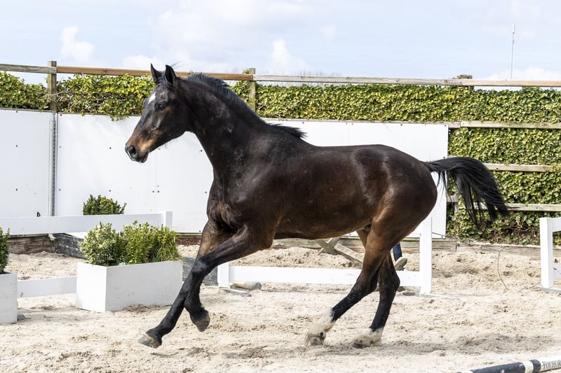 Zesjarige die alle tijd heeft gehad om uit te groeien bij de fokker. Fantastisch mooi model met een sterk front en veel uitstraling. Laat veel balans zien in de galop en is makkelijk van de grond. Springt met veel afdruk en lijkt over onbegrensd vermogen te beschikken. Zeer interessant paard dat na het zadelmak maken snel inzetbaar lijkt voor het parcours. Vader Conthinder 1.60m niveau Goedgekeurde hengst (SWB, OS) uit Conthargos. Zelf succesvol op 1.60m niveau en geeft vermogen, techniek en instelling door. Moeder Concia Blue PS (v. Cornet du Lys 1.60m) Zelf gelopen op 1.30m niveau Moederlijn / stam Grootmoeder Chancia (v. Chacco-Blue 1.60m) Uit de moederlijn: Casanocha PS – 1.45m Diasandro Blue – 1.45m Miss Caja Blue PS – 1.45m Casania Blue PS – 1.30m Concia Blue PS – 1.30m Verder in de stam: Chad Blue PS – 1.60m (goedgekeurde hengst) H5 Quintol – 1.60m–1.70m Urus 2 – 1.60m Chacitol – 1.60m Chabento – 1.60m Nicotin – 1.60m Santo 96 – 1.60m Mumbai 5 – 1.40m Sacento-Gold PS – 1.40m Air Force One – 1.40m Hannibal – 1.45m Goedgekeurde hengsten in de lijn: Conthinder Conthargos Converter I Nintender Cornet du Lys Cornet Obolensky Chacco-Blue Sandro Boy Cento Zeer sterke internationale prestatiestam met meerdere 1.60m–1.70m paarden.