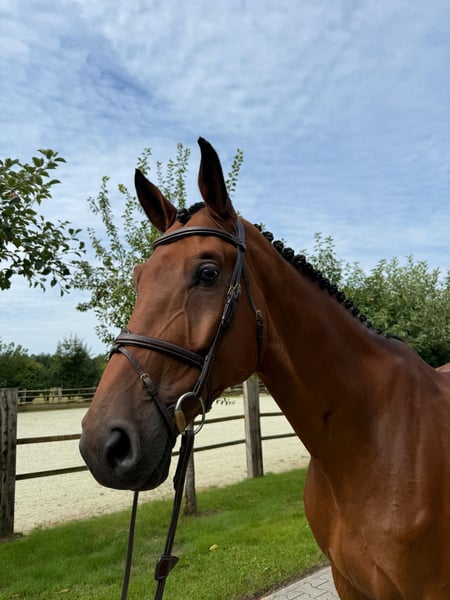 **Sales Advertisement: Oldenburg Show Jumper** For sale is a talented Oldenburg gelding, born in 2019. This elegant bay impresses with his remarkable movements and balanced temperament. **Features:** - Breed: Oldenburg - Gender: Gelding - Year of Birth: 2019 - Color: Bay - Discipline: Hunter Our gelding shows great potential in jumping and is suitable for both the ambitious amateur and the professional rider. He is well-mannered, well-trained, and has already gained initial experience in the course. He is healthy, regularly vaccinated, and dewormed. If you are interested or need further information, please feel free to contact me. Visit us to meet this wonderful horse in person!