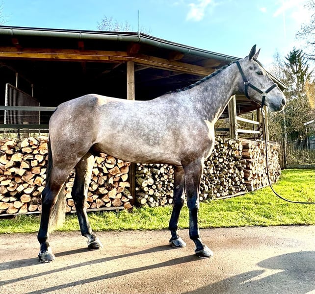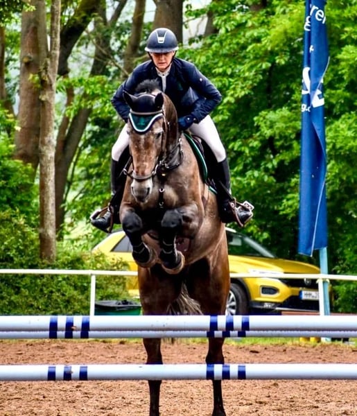 Bardzo interesujący potomek światowej klasy ogierów Kannan i Cellestial. Ma duży zakres z bardzo dobrą sekwencją skoków i jest wyposażony w doskonałą jezdność i bardzo dobre podstawowe chody. W swoich pierwszych startach wygrał kilka konkursów skokowych. A (1,00 m) i uplasował się w klasie skoków L (1,15 m). L (1,15 m). Jest bardzo grzeczny zarówno w codziennej obsłudze, jak i w terenie. Z pewnością jest to koń, który przy odpowiednim wsparciu ma przed sobą bardzo dobrą sportową przyszłość. Telefon: +49(0)171/4605744