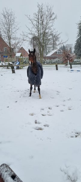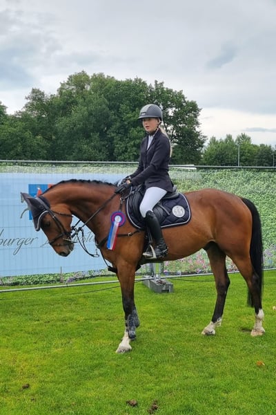 Se ofrece a la venta Cybex, un caballo de 8 años, un caballo de salto de raza Warmblood, por Casiro x Laptop, con una altura de aproximadamente 1,64 m. Cybex es un compañero fiable y fácil de montar, ideal tanto para principiantes como para niños y jóvenes. Desde el principio, ha sido presentado en concursos por una niña de 13 años y, solo en esta temporada, ha ganado 6 concursos de nivel A con notas de hasta 8,8. En el día a día, también impresiona por su carácter tranquilo y sencillo, ya sea en el manejo, durante los paseos o al cargarlo en el remolque; Cybex siempre se muestra calmado y confiable. Un compañero deportivo honesto, con las mejores condiciones para la formación de jóvenes jinetes y amateurs.