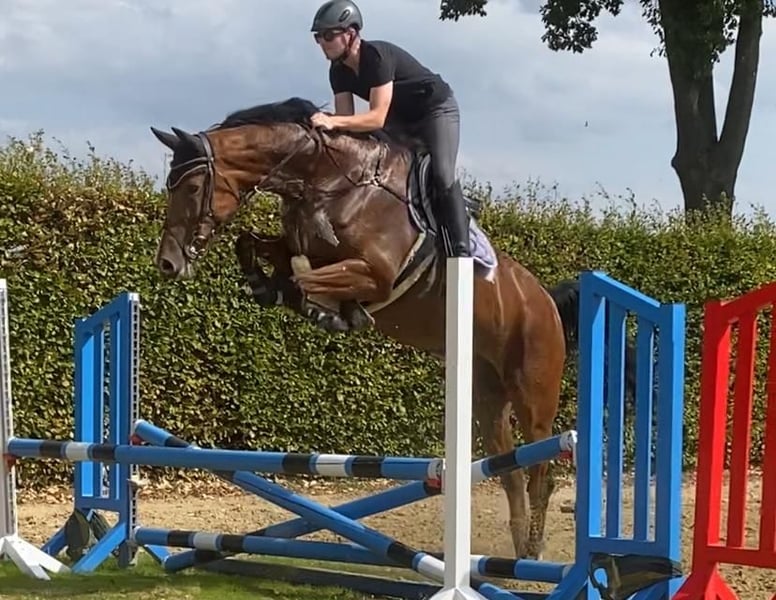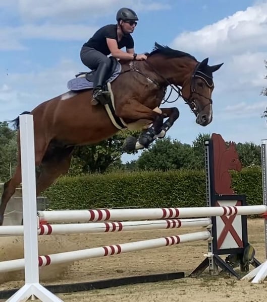Vente de particulier, cavalière amateur, de mon hongre de 8 ans, avec beaucoup de potentiel. Je l'ai acheté comme poulain lors d'une enchère. Placé en saut d'obstacles. Le saut libre sur la photo mesure 1,60 m. Pour plus d'infos, contactez par téléphone au 0163-9271377 N. Schmitz.