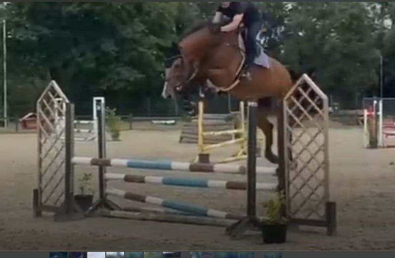 Private sale of my 8-year-old gelding, which I bought from the foal auction, due to downsizing. No TÜV available. Only riders with riding class 1 and 2 can try him out for a protection fee, which will be deducted from the purchase price. The jump in the photo is 1.60 m high. For more information, please call 0163-9271377 Nicola Schmitz.