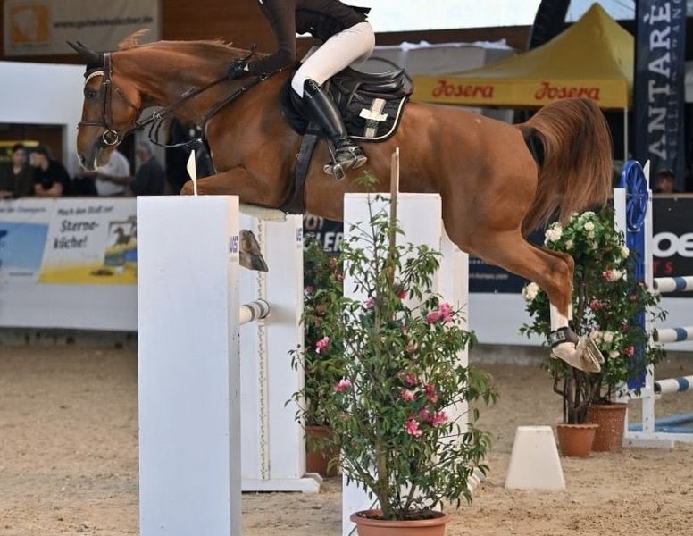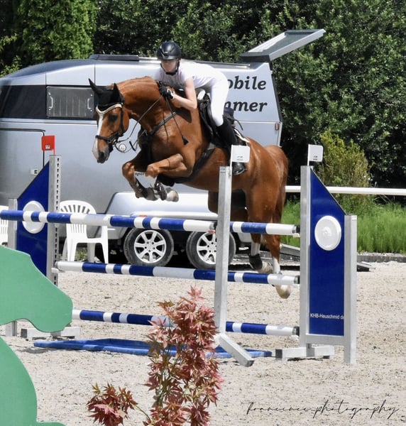 Carlo Cool ist nicht nur super cool, sondern auch ein Springpferd wie es im Buche steht. Er ist immer vorsichtig, springt in einer tollen Manier und kann durch seine Qualität und Motivation im Parcours auch Reiterfehler ausgleichen. Er lässt seinen Reiter dadurch einfach gut aussehen, auch schwächere und jüngere Reiter! Er kann nicht nur schnell sein, sondern auch Stilspringen machen mit ihm einfach Spaß! Aktuelles Video von Stil-M mit 8,3 vorhanden! Carlo hat Springen bis 1.25m gewonnen und ist 130 platziert. Qualität für mehr vorhanden. Er stammt aus einem hocherfolgreichen Mutterstamm. Seine älteren Geschwister und Nichten und Neffen sind durchweg von 130-150 Springen platziert. Durch sein feines Maul ist er dressurmäßig auch einfach zu reiten. Bei uns wurde er schonend eingesetzt und hatte eine überaus gute Platzierungsquote. Vom Amateur ausgebildet und vorgestellt. Verkauft wird er nur aufgrund von Nachzucht und dementsprechenden Platzmangel. Im Umgang, beim Schmied, Tierarzt, auf dem Transporter und auf dem (Übernachtungs-)Turnier ist er unkompliziert und einfach zu händeln. Alles in allem ist er ein zuverlässiger und souveräner Sportpartner, mit dem man sich jetzt in der Winterarbeit zusammen finden kann um nächste Saison durchzustarten! Er wurde regelmäßig geimpft, entwurmt und vom Zahnarzt und Physio angeschaut. Röntgenbilder vorhanden. Er wird selbstverständlich nur in gute, fachkundige Hände verkauft. Weitere Videos und Terminvereinbarung unter 01721803527.