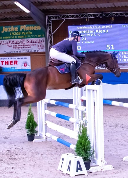 In vendita un castrone Oldenburg, nato nel 2017, con sangue di Toulon x Darco. Ha già ottenuto piazzamenti nella classe M*-Salto. È ben addestrato, ma richiede un cavaliere motivato ed esperto, in grado di sfidarlo e svilupparlo ulteriormente. Non è un cavallo adatto ai principianti, ma si dimostra motivato e ambizioso quando riceve il giusto lavoro e supporto. Un castrone con grande presenza e carisma.