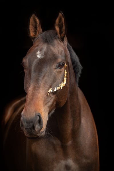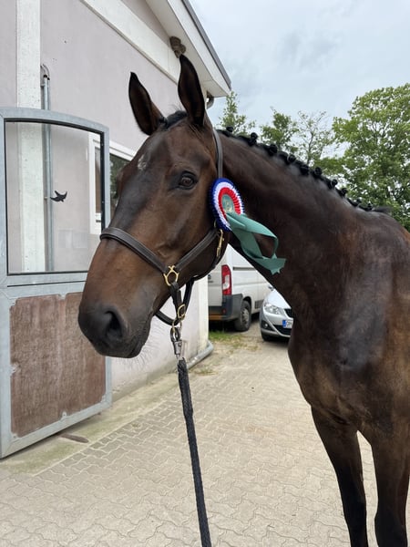 Devil's Darling, known as Döni Due to a diagnosis in the cervical spine, he is sold as conditionally rideable and at a significantly reduced price. A trial ride is not possible, as he is currently not being ridden. Please contact me privately for more information. He has competed successfully in dressage up to medium level (A*), and we have already started training with L-level exercises. He has never been promoted in show jumping, as I have no personal ambitions in that discipline. Döni is comfortable hacking alone and in a group, and is shoe- and loading-safe. He is not suitable for beginners. Current X-rays of the cervical spine and back are available. A recent health check (AKU) has not been performed.