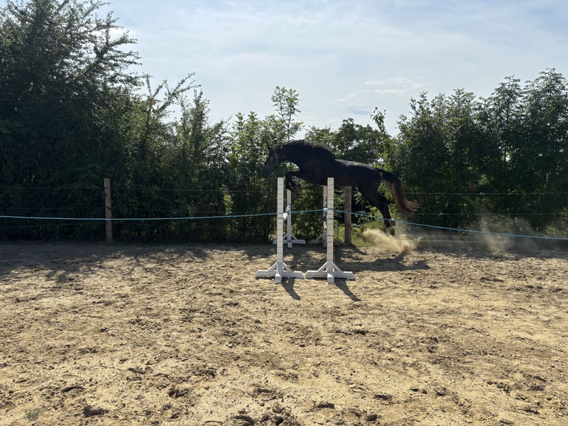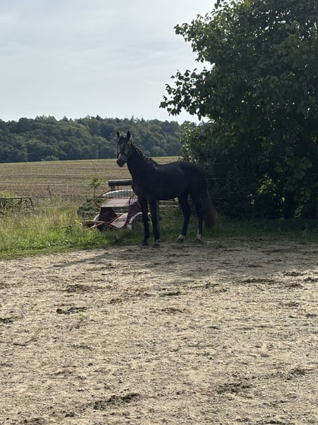 For sale: 4-year-old stallion, will be a gray, equipped with a lot of talent, knows free jumping and is lunged. Clear-headed and well-behaved. Very good pedigree from Cornet's Darco x Balou du Rouet x Quality. His mother Quabalouna has already competed at 1.40m. Height approximately 1.68m (still growing). Good for the farrier. No veterinary examination available, but can be done if desired.