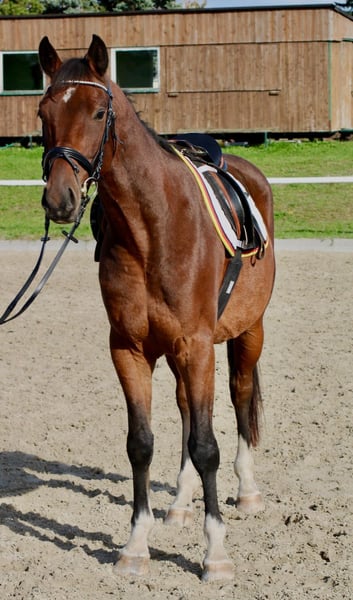 Na sprzedaż: 4-letni wałach po Casino Grande x Desperados do samodzielnego ujeżdżenia. Wzrost około 1,63 m, nie jest koniem noszącym ciężar. Jest wstępnie ujeżdżony, porusza się we wszystkich 3 chodach pod siodłem i zna pierwsze małe skoki pod jeźdźcem. Wykazuje talent w ujeżdżeniu i skokach, ma przyjazny charakter. Z powodu swojego wieku i stopnia wyszkolenia (jeszcze) nie jest koniem dla początkujących. Dobrze dogaduje się z innymi końmi i jest łatwy w obsłudze. Filmy chętnie prześlę przez WhatsApp.