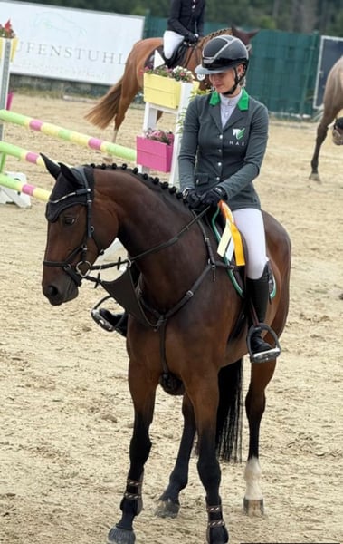 Zum Verkauf steht eine 7-jährige Stute aus eigener Zucht mit bester Springabstammung Conthargos x Bustique, die wir selbst gezogen und mit viel Zeit und Sorgfalt ausgebildet haben. Sie hat sich in der Ausbildung stetig positiv entwickelt und zeigt sich im täglichen Training sowie im Parcours als ehrliches, motiviertes und vermögendes Nachwuchsspringpferd. Die Stute macht im Springen besonders viel Freude, da sie sich über jede Aufgabe freut, dabei mitdenken möchte und einen tollen Ehrgeiz mitbringt. Sie springt sehr vorsichtig und entwickelt sich kontinuierlich weiter – aktuell weiterhin in Ausbildung mit klarer Perspektive für die nächsten Schritte im Sport. Im Turniersport konnte sie sich bereits Springpferde L platzieren und zeigt auch auswärts eine tolle Einstellung. Sie ist damit ein sehr interessantes Pferd für Reiter*innen, die ein Nachwuchspferd suchen und Spaß daran haben, es weiter aufzubauen.