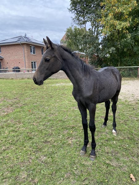 Hallo, zum Verkauf steht mein Hengstfohlen das am 04.05.2025 gesund auf die Welt gekommen ist. „Cayman Blue SW“ Stammt von Charthago Blue OLD (Zuchthof Klatte) aus meiner achtjährigen Uriko x Cormint Stute ab. Im Umgang ist das Fohlen sehr lieb und würde niemals treten oder beißen. Seinen tollen Charakter bekommt er von seinem Vater, Charthago Blue OLD, der aktuell auch viel von der jungen Johanna Klatte auf Turnieren erfolgreich vorgestellt wird. Seine Mama habe ich Anfang 2023 sechsjährig selber eingeritten und sie war immer sehr artig. Leider hatte ich aufgrund meines Jobs nicht mehr die nötige Zeit sie weiter zu fördern, so dass ich mich dazu entschieden habe die Stute besamen zu lassen. Im Parcours zeigte die Stute sich immer mutig, konzentriert und war immer bereit aus jeder Lage zu springen. Sie wollte immer auf die andere Seite und ist nie stehen geblieben. Mit diesen zwei tollen und vermögenden Pferden als Eltern, habe ich sehr viel Vertrauen darin, dass das Fohlen nicht nur super springen wird, sondern dazu noch einen ganz ehrlichen und tollen Charakter haben wird. Am 21.06.2025 konnte der kleine Mann sich schon von seiner besten Seite zeigen und wurde beim Zuchthof Klatte Prämiert. Die ganze Vorstellung findet man auch bei Clip My Horse. Die Stute steht auch zum Verkauf, da ich auf Ponys umsteigen möchte. Bei Interesse schreiben Sie mir gerne eine Nachricht, oder direkt per Whats App unter: 0151-62483437