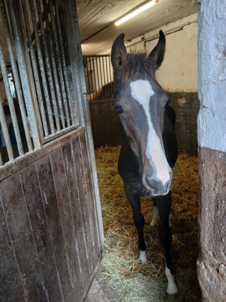 À vendre, Cover Boy de Contrast, issu d'une mère de Lake Tahoe. Il est né le 26 janvier 2025 et grandit actuellement avec des poulains de son âge au pré. Il n'a aucun problème pour se faire parer les pieds, être mené et être harnaché. Contrast a connu un succès jusqu'au niveau international et peut se vanter de victoires et de classements jusqu'à la classe S*** en saut d'obstacles. Sa mère Lottchen (de Lake Tahoe) a également plusieurs classements et victoires jusqu'à la classe S en saut d'obstacles. Pour toute question supplémentaire, je suis à votre disposition.