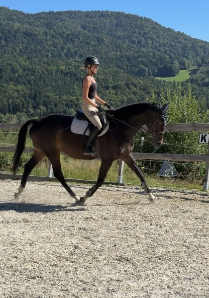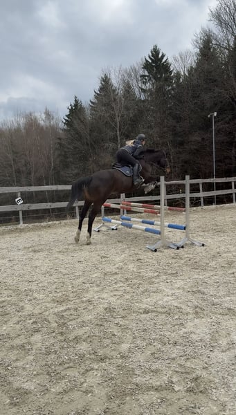 Zum Verkauf steht diese 11-jährige dunkelbraune Stute namens Amazing Amy. Amy ist im Jahr 2015 geboren, etwa 168cm groß und stammt als Oldenburger Springpferd von Armand xx x Stern ab. Da sie für den Vielseitigkeitssport gezogen wurde, besitzt sie einen hohen Vollblutanteil, welcher bei der Springarbeit zum Vorschein kommt. Sie ist fein zu reiten und kennt sowohl das Gelände als auch Vielseitigkeitshindernisse. Aufgrund ihrer Ehrlichkeit ist sie jedoch kein Anfängerpferd. Da sie im Fohlenalter von einem anderen Pferd an der Hinterhand verletzt wurde, fällt es ihr schwer Last aufzunehmen. Steht sie jedoch voll im Training, hat sie keinerlei Einschränkungen und kann deshalb auch problemlos gesprungen werden. Diese Stute steht derzeit in 94571 Schaufling. Platz vor Preis, kein Notverkauf. Dieses Pferd wird im Auftrag verkauft. Bei Fragen oder ernsthaftem Interesse gerne unter folgender Nummer melden: 016090632225