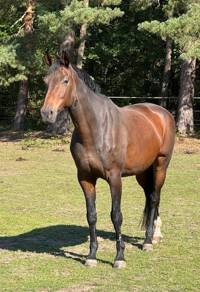 For sale is a 10-year-old Oldenburg show jumping mare with an approximate height of 17.8 hh. She is trained up to class L in jumping but is only conditionally rideable and not suitable for beginners. The mare is sensitive and requires a calm, consistent, and experienced handler. Due to her pedigree, size, and presence, she is very well suited as a broodmare. She has already produced two healthy foals. In daily handling, she is easy to load and farrier-friendly. She loves being worked from the ground. Sale only to responsible owners.