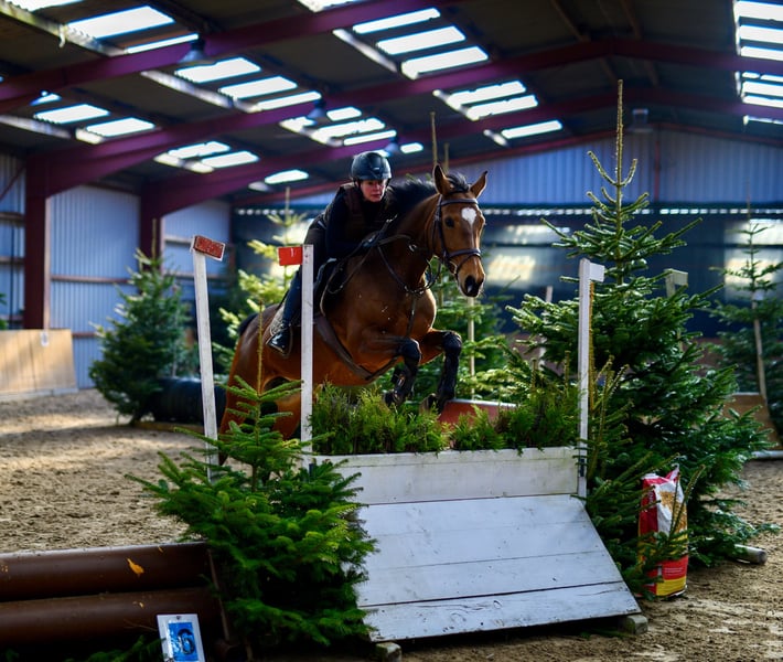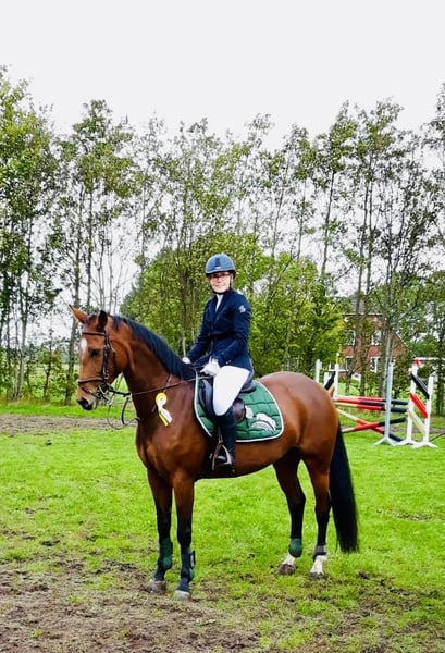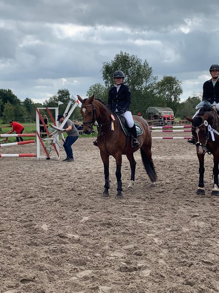 Landia is a completely unspoiled and highly ambitious mare. She is easy to ride and therefore suitable for young riders. We bred, trained, and competed her ourselves up to A** level, achieving numerous wins. Landia has a strong jumping instinct and always aims for the other side; she has plenty of go but is easy to handle. In recent years, she has had three foals. She has been back in training this year, but due to professional commitments, I am no longer able to give her the time she deserves. She is in excellent condition, as she always has been, with fine legs (no signs of splints or similar issues), and she has never experienced colic, coughing, or other health problems. Price is negotiable for the right home.