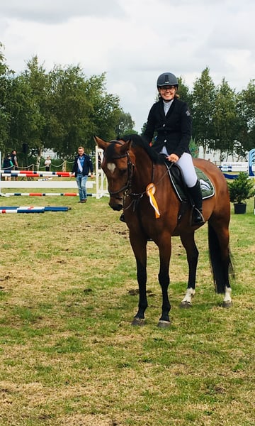Landia is een volledig onervaren en zeer ambitieuze merrie. Ze is fijn te rijden en daardoor ook geschikt voor jongeren. We hebben haar zelf gefokt, opgeleid en tot A** niveau kunnen rijden met vele overwinningen. Landia springt altijd graag naar de andere kant, heeft veel go, maar laat zich goed hanteren. In de afgelopen jaren heeft ze drie veulens gekregen. Ze is sinds dit jaar weer in training, maar door werkgerelateerde redenen kan ik haar niet meer de tijd geven die ze verdient. Ze is topfit, dat was ze altijd, heeft dunne benen (geen gal of dergelijke), heeft nog nooit koliek of hoest gehad, etc. Plaats gaat voor prijs.