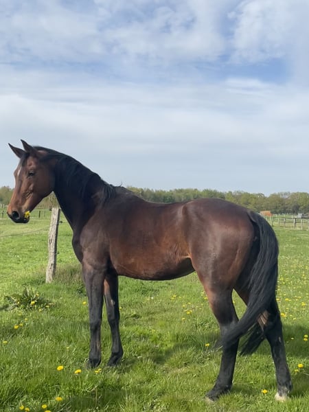 Oldenburger Stute 15 Jahre 1,66m groß Freizeit Geritten Kennt Hunde, Kinder Platz, Halle, Gelände, Longieren Verladefrom Kein Steigen, kein Buckeln, kein Losrennen. Sie kennt Box, Offenstall und 24/7 Weide, respektiert Zäune und ist unkompliziert im Umgang. Vorgeschichte: – Griffelbeinbruch hinten rechts (2021) – Sehnenschaden (2022), wurde per Eigenbluttherapie behandelt, seitdem beschwerdefrei im april wurden die Zähne gemacht alle Impfungen auf dem Aktuellen Stand gerne wird ein für immer zu hause gesucht bei einem Freizeitreiter Trense, Sattel, Halfter, Gamaschen, Putzzeug, Regendecke, Winterdecke, Fliegendecke gibt's gegen Aufpreis dazu. < 5.000€