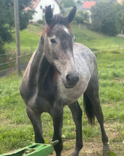 Zum Verkauf steht eine wunderschöne Jährlingsstute mit 1A Genen. Die Stute hat einen Klasse Stammbaum, dadurch ist es sehr wahrscheinlich das sie zu einem spitzen Springpferd ausgebildet werden kann. Auch für Zuchtzwecke wäre sie eine optimale Wahl. Name: Justitzia (Frieda) Farbe: Schimmel Geschlecht: Stute Geboren am: 01.05.2024 Stockmaß: 1,55m (derzeit) Abstammung: siehe Bilder - in Deutschland geboren und aufgewachsen - Jung und lernfähig - ideal zum selbst ausbilden - Freundliches, offenes Wesen - leicht im Umgang - Gesund, kräftig und bereits gut entwickelt - Hochwertige Abstammung - viel Potenzial - Bereits im jungen Alter gut im Umgang Aufgepasst: Ein Pferd ist kein Spielzeug! Seien Sie sich bitte bewusst, das solch ein Tier viel Zeit und Arbeit in Anspruch nimmt. Eine Rückgabe ist nicht möglich. Vergewissern Sie sich bitte VOR dem Kauf, ob Sie der Sache gewachsen sind. Bei Fragen stehe ich Ihnen gern zur Verfügung. Bitte kontaktieren Sie mich nur bei tatsächlicher Kaufabsicht. Vielen Dank!