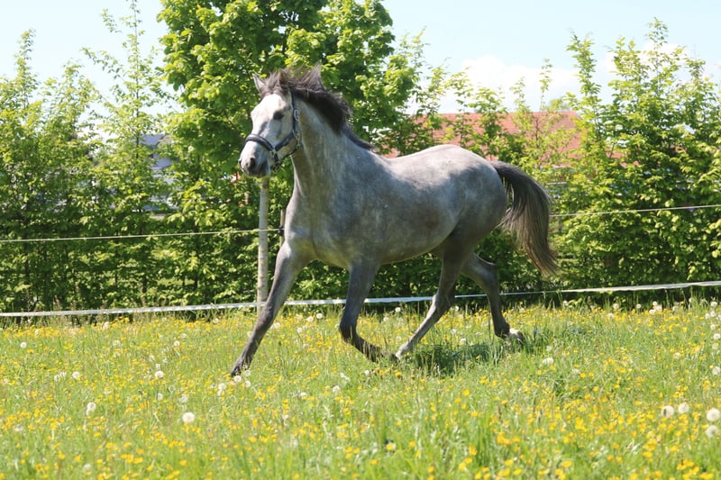 For sale: Oldenburg show jumping mare by ZINEDINE out of CASSONE, born March 2022, currently approximately 16.1 hh, grey. The mare has not yet been ridden under saddle but is already familiar with lunging with bridle and lunge line. She is well-behaved in daily handling. Viewings available by appointment. Price negotiable.