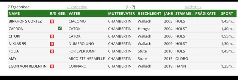 Poiché stiamo abbandonando l'allevamento di cavalli da salto e ci dedichiamo esclusivamente all'allevamento di cavalli da dressage, ho deciso di trovare una nuova casa per questa fantastica e semplice fattrice. Qualche anno fa ho potuto acquistare sua madre "Amy" da un cavaliere di salto internazionale di grande successo per l'allevamento. Il suo primo puledro è stata subito questa meravigliosa e colorata figlia di Ogano. La abbiamo da circa 6 settimane sotto sella. È molto gentile e già salta piccoli ostacoli con il cavaliere senza problemi. È già disponibile un attuale controllo veterinario con 20 radiografie della schiena e completamente senza referti.