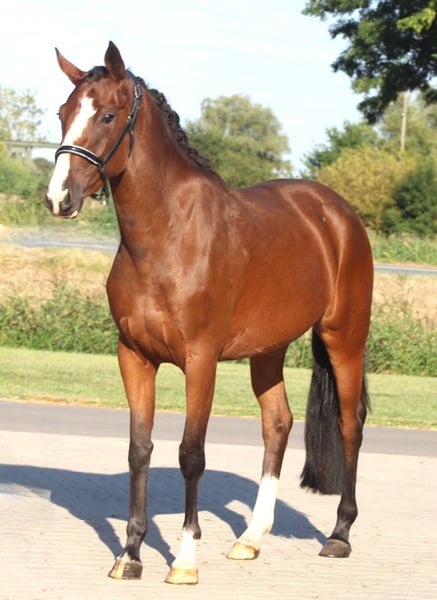 As we are giving up show jumping breeding and will only breed dressage horses, I have decided to find a new home for this wonderful and uncomplicated mare. A few years ago, I was able to acquire her mother "Amy" from an internationally very successful show jumper for breeding. Her first foal was this great, colorful daughter of Ogano. We have had her under saddle for about 6 weeks now. She is very well-behaved and is already jumping small fences with a rider without any problems. A current veterinary examination with 20 X-rays, including the back, is already available and shows no findings.