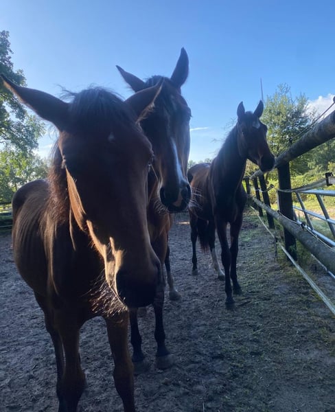 Ein selbst gezogener Rohdiamant sucht Platz fürs Leben - für Sport, Spiel, Spass und Freude! Bitte mit OP-Versicherung und ganz viel Liebe und Aufmerksamkeit! Eignung: Freizeit, Springen, Dressur, Gelände, Busch, ... das ließ sich hier technisch nicht auswählen.. ihr Vater ist aktiv im Springsport (aktuell M**), ihr Großvater internatinal gelaufen! Die Mutter, eine tolle Stute, bei mir im Stall, der Vater Hauptkommissar (von Heartbreaker, internatinal) gekört und im Springsport ist in Bremen zu Hause. Geboren in 2023 nach einem Gewitter... hier kommt "Lillis Heart Of Hazel"! Equidenpass vorhanden und registriert vom Springpferdezuchtverband Oldenburg-International e.V. Lillis Heart Of Hazel ist noch grün hinter den Ohren. Roh, bereit zum Anreiten und/oder für noch eine Runde 24/7 Wiese + Wachsen. Sie hat eine 'unbeschwerte Babyzeit und Kindheit' hinter sich. (Siehe auch Bilder mit Mutti und kleiner Schwester.) Sie wächst in gemischter Herde auf. Sie lässt sich nicht von jedem die Butter vom Brot nehmen, eher ranghoch, gelegentliche Anfragen beim Chef, ob sie die Führung übernehmen soll. Kennt Hufschmied, Entwurmungen, Impfen. Anhängerfahren (schon etwas her), Putzen, liebt Kraulen. Bei Fremden eher skeptisch. Die müssen erstmal ihr Herz gewinnen. Bei Kraft- und Mineralfuttergabe in der Herde versteht sie weniger Spass, da ist sie immer an erster Stelle. Sucht ein zu Hause, wo sie gefördert wird!! Ihr Papa im Sprinsport, ihre Mama ist eine großartige, liebe (Zucht-)Stute, die auch uns Menschen noch gelehrt hat!! Ihre jüngere Schwester steht auch bei uns auf der Anlage. Keine Unarten Bisher nicht krank gewesen. AKU natürlich machbar. Weitere Bilder/Videos gern auf Anfrage. Kein Notverkauf! Kontakt bitte telefonisch 0176 66681111 Weiterd Videos auf Anfrage Verkauf aus gesundheitlichen Gründen von privat.