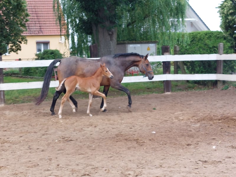Award-winning, elegant filly with excellent pedigree both from the dam Symphony (descent from lady pride) and from the well-known sire Alvalon (a son of the world champion maker Askari). The stallion Alvalon is considered a very good sire of his great qualities, which also led to high prize money. The foal convinces with its sweeping gaits and good proportions. This is how it was awarded at the foal show of the Oldenburg Horse Breeding Association.