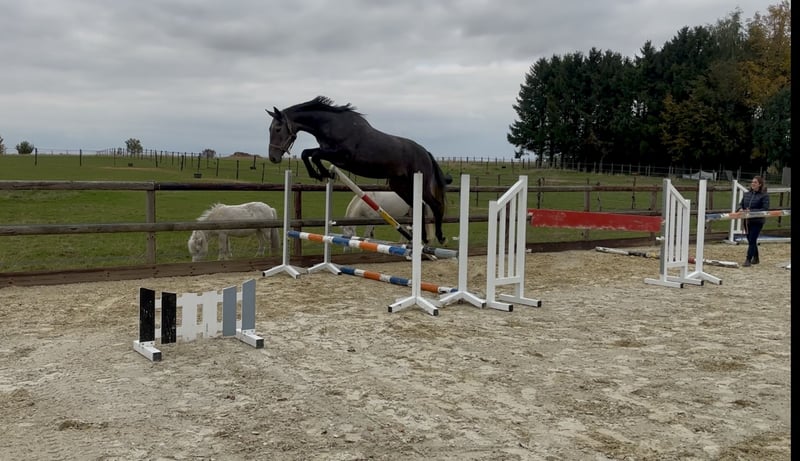 Bien sûr ! Veuillez me fournir les caractéristiques du cheval (race, âge, taille, tempérament, niveau d'entraînement, etc.) afin que je puisse rédiger une annonce adaptée. All In Blue des Arsys est une très belle jument de 3 ans à vendre , BWP Prestatie Stamm 22 Charthago Blue x Arko III x Quidam X Darco . Son propre frère Ultimate Blue des Arsys ( 5 ans ) enchaîne les sans fautes et classements en catégorie jeunes chevaux (A** et L) en Allemagne . Future is promising …😎 🚀