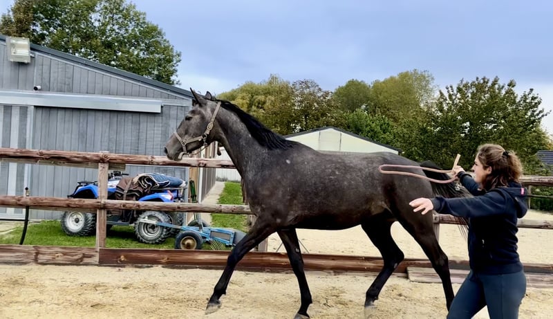 All In Blue des Arsys is a very beautiful 3-year-old mare born in our stables from a very good mother sport line : ,BWP Prestatie Stamm 22. A dream DNA for your real pleasure ! Charthago Blue x Arko III x Quidam x Darco. Her full brother, Ultimate Blue des Arsys (5 years old), is consistently jumping clear rounds and earning placings in the young horse classes (A** and L) in Germany. The future looks very promising for her … 😎🚀