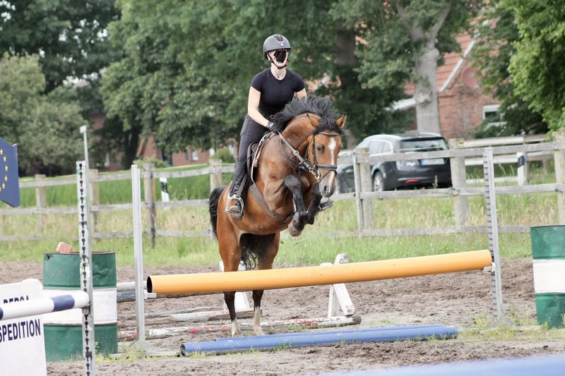 Zum Verkauf steht die vielversprechende 5-jährige Stute „Talitha“ mit einem Stockmaß von ca. 1,65 m. Abstammung: For Planet x Corianus x Baldini II x Sunset Boulevard xx „Talitha“ ist Staatsprämienanwärterin und überzeugt durch ihre sehr guten Ergebnisse in der Stutenleistungsprüfung (Freispringen 9,0 / Rittigkeit 8,0). Auch sportlich konnte sie bereits auf sich aufmerksam machen: Als Siegerin des Freispringchampionats 2024 in Höven sowie mit einem 2. Platz in einer Springpferdeprüfung unterstreicht sie ihr Vermögen und ihre Qualität. Sie ist altersgerecht ausgebildet, bereits turnier erfahren und zeigt sich unter dem Reiter motiviert, leistungsbereit und unkompliziert. Im täglichen Umgang präsentiert sie sich sehr brav, freundlich und zuverlässig. TÜV kann auf Wunsch jederzeit durchgeführt werden. Kein Notverkauf Eine äußerst interessante Nachwuchsstute für den gehobenen Springsport sowie für die Zucht. Bei Interesse freuen wir uns auf Ihre Kontaktaufnahme.