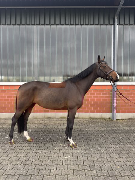 For sale is a 5-year-old, homebred mare by Bentley van de Heffinck out of Lord Pezi. Her dam was successfully competed internationally up to 1.45 m. Broke at four and gently trained, she is gaining her first competition experience and placings in show jumping A-classes at the age of five. The mare is easy to ride, has excellent basic gaits, and is very well-behaved in handling. Please feel free to contact me for more information or any questions. Email: muellerlouisa@gmx.de WhatsApp: +49 151 16126663