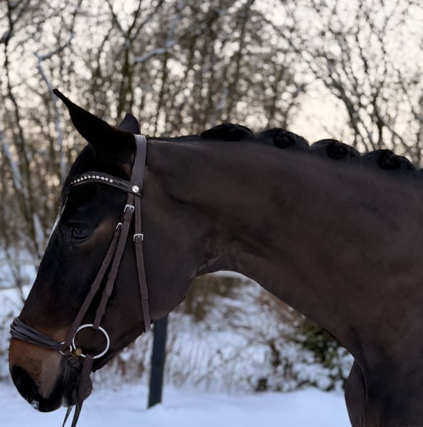 Agathe - eine 5 jährige, wunderschöne, elegante, 175cm große Oldenburger Stute, von Air King aus einer Quidam’s Rubin-Beach Boy Mutter. Sie überzeugt durch ihre super Arbeitseinstellung und Lernbereitschaft, sowohl am Sprung wie auch bei der Dressurarbeit. Sie wurde 4 jährig schonend angeritten, durfte ein bisschen Turnierluft schnuppern und ging dann aufgrund ihrer Größe und Körperbau noch einmal in eine wohlverdiente Pause und wird jetzt weiter ausgebildet so das sie startklar für die kommende Springpferde-Saison ist. Agathe ist gesund und natürlich auch regelmäßig geimpft und entwurmt. Bei Interesse oder für weitere Informationen stehen wir jederzeit zur Verfügung.