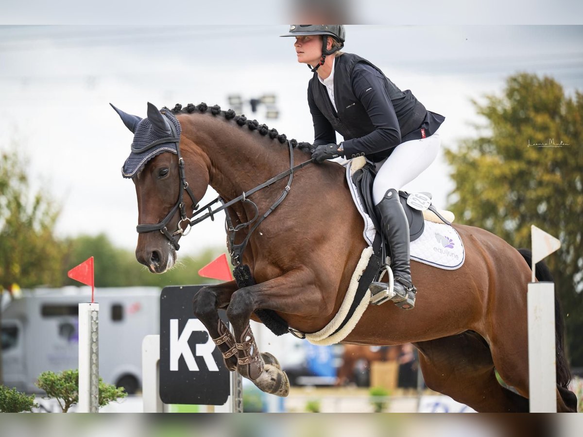 À vendre, une jument Oldenburger de 7 ans, Orochata. Elle se distingue par son attitude très affectueuse et sa grande volonté de performer. Très bien dressée et douce avec l’homme, elle est également très amicale avec les enfants et adore les câlins. Conformément à son âge, elle est régulièrement entraînée et présentée en concours. Récemment, Ori a remporté des épreuves de saut d’obstacles en catégories A et L, et a été placée à plusieurs reprises dans des compétitions de saut en forte concurrence. Elle s'apprête à passer ses premières épreuves de saut M. Ori n’a aucune mauvaise habitude, se laisse facilement charger et connaît le camion et la remorque. Elle sort seule ou en groupe au pré, et peut être monté aussi bien seule qu’en groupe lors de balades. Elle connaît la tondeuse à crins. Sur le plan de la santé, Ori se porte très bien : elle a de bons pieds, est régulièrement vermifugée et vaccinée. Des radiographies sont disponibles et en bon état. Dans la deuxième vidéo, une fille de 13 ans la monte pour la première fois lors d’une séance d’essai.