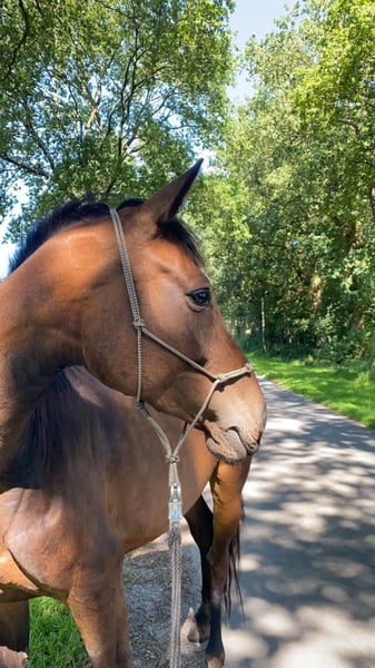 A la venta nuestra yegua criada por nosotros, Celona. Nació, creció y se desarrolló con tranquilidad y sin prisa. Celona está relajadamente montada, conoce el peso del jinete, trabaja en la cuerda y en el suelo. Ya ha realizado sus primeras vueltas con jinete, sin longe, y se muestra muy positiva y con ganas de aprender. Gracias a su linaje (Codex One x Casiro), Celona tiene excelentes condiciones para el salto, pero también puede desarrollarse como una yegua versátil de cría o de ocio. En el manejo, es dominante, quiere agradar y siempre quiere ser "la primera". Ha pasado casi toda su vida en paddock, mostrando un carácter equilibrado y contento, aunque en verano necesita un manto anti-insectos, del cual también pide. Celona requiere de una persona experimentada, tranquila, con conocimientos de caballos, que la apoye de manera justa y transmita seguridad. ¡No es posible realizar pruebas de monta!