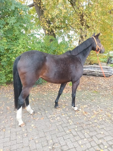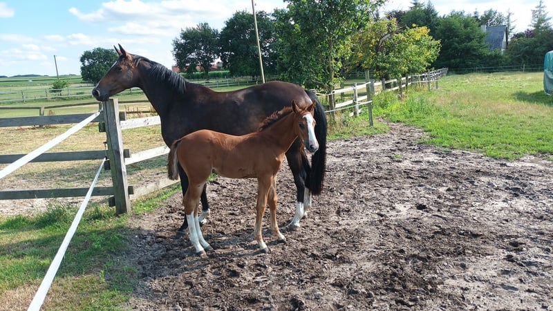 We are selling our beloved 8-year-old OS-registered show jumping mare by Balou Peggio with a premium status from the OS Verband, out of the S**-winning elite mare Sevana by Silvio I – Cosinus – Vollkorn xx – Manolete xx. We bred and trained the mare ourselves. At four years old, she foaled a top-quality stallion prospect by Asca Z for the autumn elite auction in Vechta. Due to her excellent rideability, character, and size (16.1 hh), she was intended to be the future mount for our 11-year-old daughter. Unfortunately, she sustained an injury two years ago (cartilage damage in the elbow joint – veterinary report available), which now prevents her from competing in show jumping. Primarily, we are offering her as a broodmare because of her excellent pedigree, but we could also see her as a wonderful leisure partner for fun riding (we haven't ridden her since last summer due to her injury). Only for good hands! No dealers!