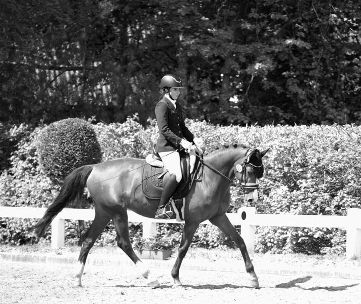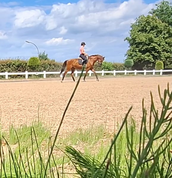 Verkauft wird 9 jährige Fuchsstute von Crumble . Cara Mia ist bei mir nur in der Dressur gefördert worden , dort läuft sie sicher auf L -Niveau. Platzierungen in A und A** sind vorzuweisen ( 2*, 4*,4*) .Erste L Dressuren ist sie bereits auf Turnier gelaufen und konnte sich jedes Mal im guten Mittelfeld positionieren. Sie kennt Schmied ( aktuell 4 Eisen ,kann aber auch mit nur 2 laufen), regelmäßiges impfen, alleine oder in der Gruppe ausreiten, Padock, sowie Koppel . Auf der Koppel ist sie eher eins der ranghohen Pferde. Sie ist kein reines Anfängerpferd in der täglichen Arbeit,sie möchte gefordert werden beim ausreiten etc ,aber schon. Ihr Manko und sie wird auch in nur nachweislich ,fachkundige Hände angegeben : Ella hat allergisches Asthma , in den Wintermonaten dank inhalieren, ist davon wenig bis nichts zu merken ( kann ganz normal bewegt werden) ,im Sommer gibt es gute und etwas schlechtere Tage .Mein Tierarzt möchte aber nicht ausschließen, wenn sie zum Beispiel an die Nordsee kommen würde , dass ihre Symptome verschwinden würden/ könnten. Sie läuft seit fast 2 Jahren nur auf Inhalation und der Bewegung um ggf an nicht so guten Tagen , ihre Atemwege zu reinigen. Rö-Bilder vom Rücken aus 2024 liegen beim Tierarzt vor, ohne Befund . Ich könnte sie mir auch als Zuchtstute vorstellen, da sie eine sehr gute Abstammung hat . Ob das Asthma vererbbar ist ,oder ob nicht ,konnte mir leider nicht in der Klinik abschließend erklärt werden , es wird davon ausgegangen ,dass es nicht vererbt wird. Abgabe ,auch nur , weil ich doch sportlicher ambitioniert bin, als dass es zu ihren Umständen auf Dauer passen würde. Sie ist seit dem sie 3 jährig ist , in meinem Besitz.