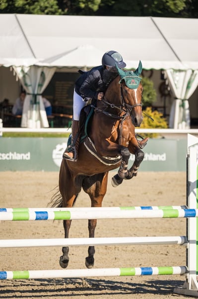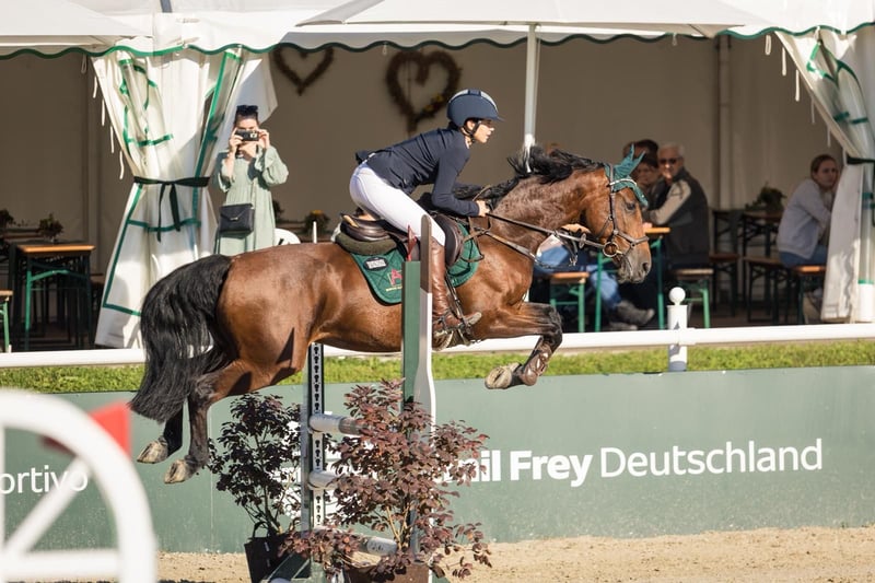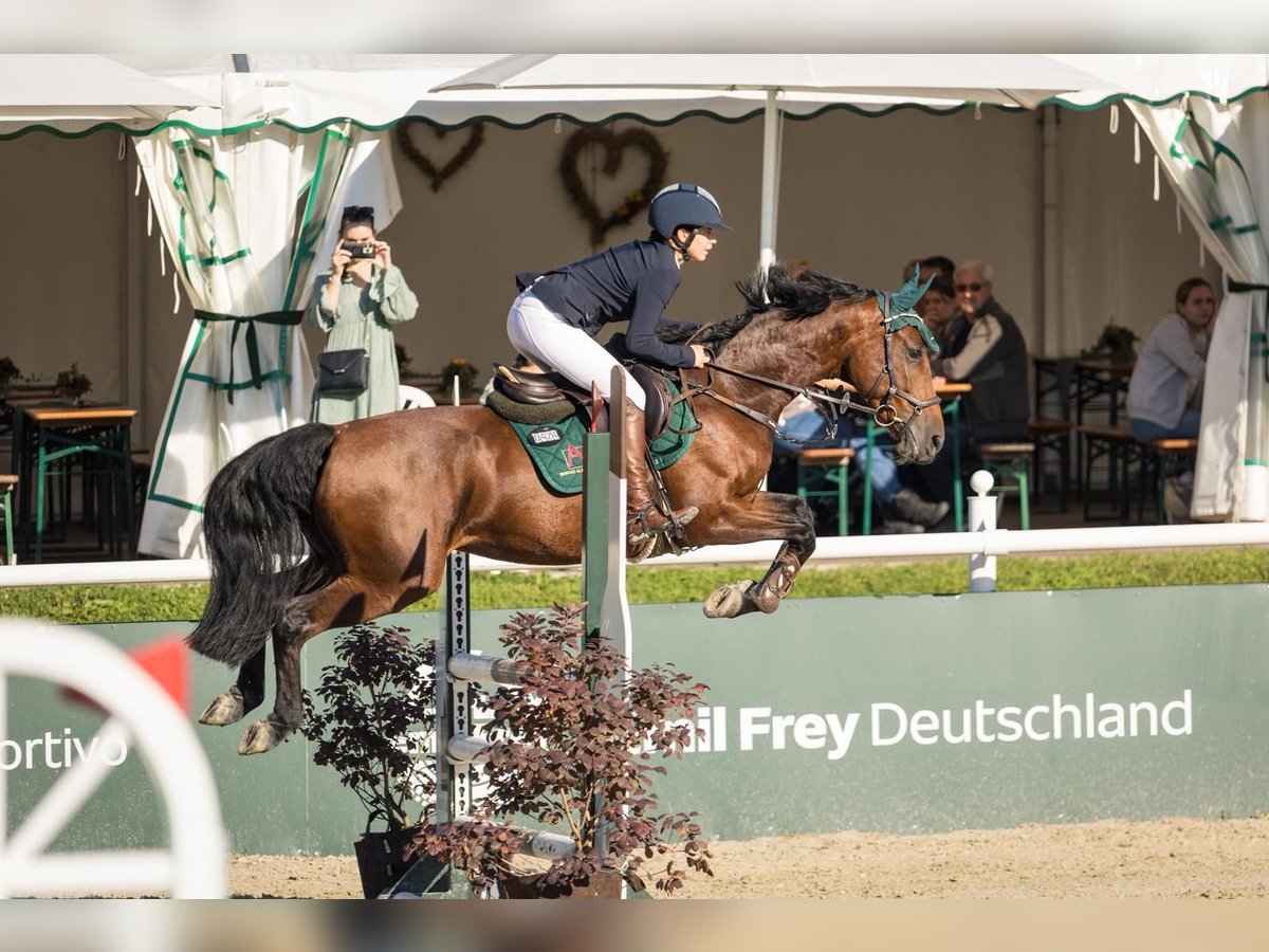 Hallo, aufgrund von Zeitmangel verkaufe ich schweren Herzens meine achtjährige Stute. Sie ist eine echte Sportlerin, liebt das Springen und möchte immer zuverlässig auf die andere Seite. Sie bringt viel Vermögen und Leidenschaft mit und zeigt fliegende Galoppwechsel mit Leichtigkeit. Mit ihrer Größe von ca. 1,62 m ist sie das perfekte Amazonenpferd für ambitionierte Reiterinnen. Zudem ist sie sehr einfach in Anlehnung zu reiten. Sie konnte sich in Springpferdeprüfungen Kl. A** bis 8,1 sehr gut platzieren. Vom Wesen her ist sie freundlich, aufmerksam und dem Menschen stets positiv zugewandt. Auch mit anderen Pferden versteht sie sich gut. Beim Hufschmied ist sie stets brav. Aufgrund ihrer hohen Leistungsbereitschaft benötigt sie tägliche Auslastung. Bekommt sie diese nicht, sucht sie sich gern selbst Beschäftigung. Daher habe ich mich im Dezember 2024 dazu entschlossen, sie einer jungen Reiterin zur Verfügung zu stellen. Seitdem steht sie auf dem Hofgut Albführen. Ein Punkt, den ich offen ansprechen möchte: Sie ist nicht verladefromm. Obwohl sie immer im Training stand, konnte sie daher kaum Turniererfahrung sammeln. Ich bin überzeugt, dass sich dieses Thema mit professioneller Unterstützung lösen lässt, jedoch fehlt mir aktuell die Zeit dafür. Ich glaube fest an ihr großes Springpotenzial und bin sicher, dass sie einer passenden Person viel Freude auf Turnieren bereiten wird. Aufgrund dieser Problematik kann ich mir auch eine Probezeit oder besondere Konditionen beim Kauf vorstellen. Gesundheitlich war sie nie krank und ist topfit. Lediglich ein seit Jahren bestehendes equines Sarkoid an der Brust stellt einen kleinen Schönheitsfehler dar. Wer eine Sportlerin mit Herz sucht, ist bei ihr genau richtig. Durch ihre sehr gute Abstammung später bestimmt auch gut für die Zucht geeignet.