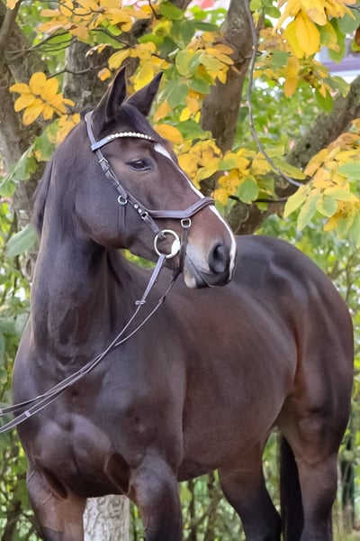 Beautiful 8-year-old mare with an outstanding international pedigree available for sale. Poci is a show jumping horse at L-level, placed in competitions, stands at 1.68 meters, and is absolutely well-behaved. She is suitable for children and inexperienced riders in the arena and on trail rides, making her a true fun ride for everyone—whether in the woods, water, or on open fields. Her greatest talent lies in jumping, where she demonstrates a powerful take-off, jumps very roundly, and moves with incredible elasticity through her body. She is unaffected by any under-saddle aids and maintains her focus. Due to her strong impulsion, a secure seat is essential at the jump. She has the talent for everything, only requiring a rider who can sit well and appreciate her qualities. Her dam has produced multiple S-level winners and comes from a direct 1.60m dam line. The full sister of her dam is successful at 1.60m under Niels Bruynseels. In handling and herd behavior, she is well-mannered, suitable for amateurs, loads easily onto trailers, and is very comfortable to ride. She has spent 24 hours outside with the herd at our place, eats well, and is very easy to keep—lightly fed, with top TÜV (including neck and back). She comes directly from the breeder. For us, as a leisure and amateur horse, she is almost "too good," and since we cannot keep them all, this rare gem is for sale. Her mother and siblings are with us and can be visited. Currently in professional training, trial rides are possible by arrangement. Directly from the breeder.